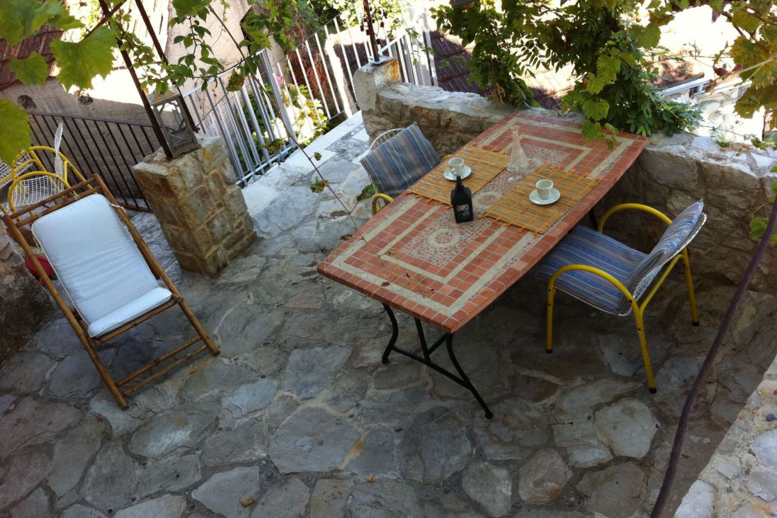 Das Haus hat zwei Wohneinheiten. Ihre Ferienwohnung befindet sich im zweiten Obergeschoss und hat einen separaten Zugang mit einer rebenüberwachsenen Terrasse . Sie wohnen in einem stilvollen jahrhunderte alten Steinhaus mit herrlicher Sicht auf das Meer. Alles im Haus ist in Holz und Stei...