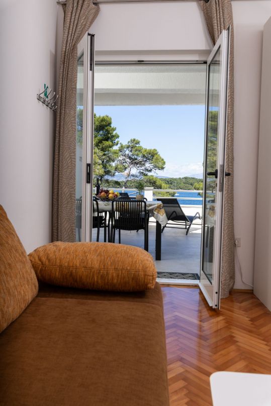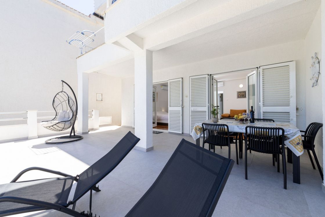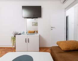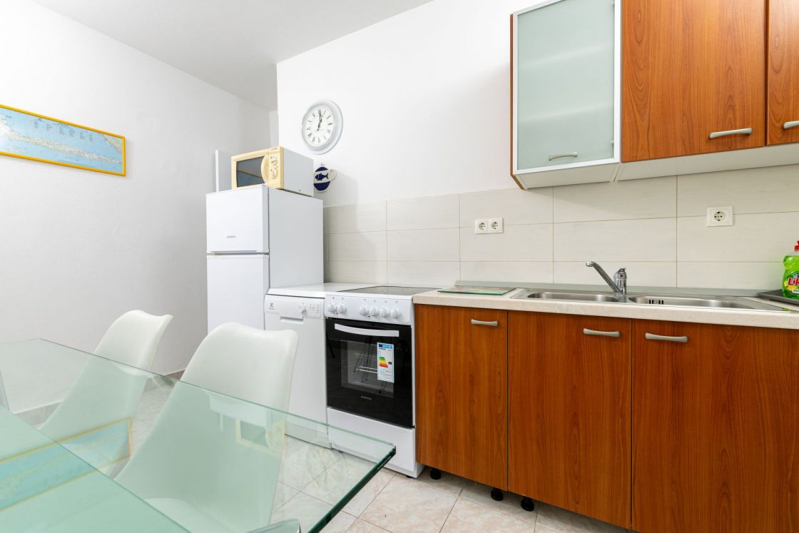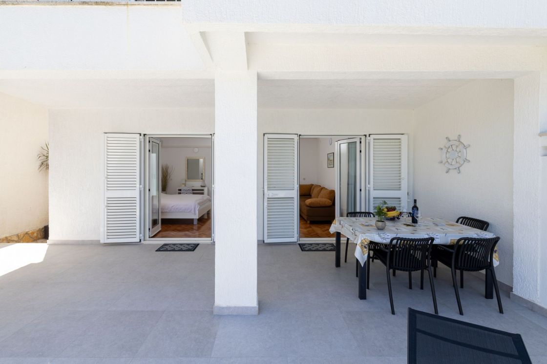 Die Wohnung befindet sich im Erdgeschoss mit separatem Eingang auf der Ostseite des Hauses und eine große 55m2 befindet. Es ist sehr komfortablen und angenehmen Aufenthalt. Es besteht aus zwei Schlafzimmern, Küche, Diele, Bad und eine große Terrasse (40m2). Die Wohnung ist komplett mit LCD-TV, Sat, Klimaanlage und Wi-Fi-Internetzugang ausgestattet.