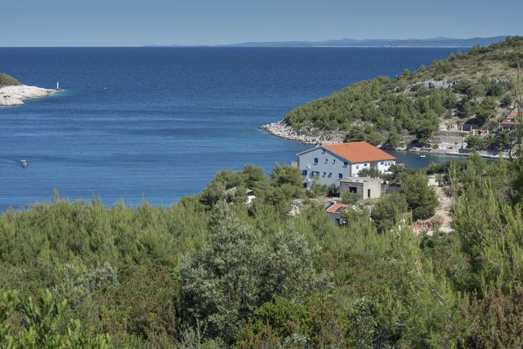 Buchten Vira, Pribinja und Široka liegen auf der Nordseite der Insel Hvar ca. 3 km von der Stadt Hvar entfernt.Die umliegenden Kiefern, deren Baumkronen mit dem sommerlichen Mistral singen, machen diese Buchten auf der Inselnordseite auch während der heißesten Sommertage angenehm.