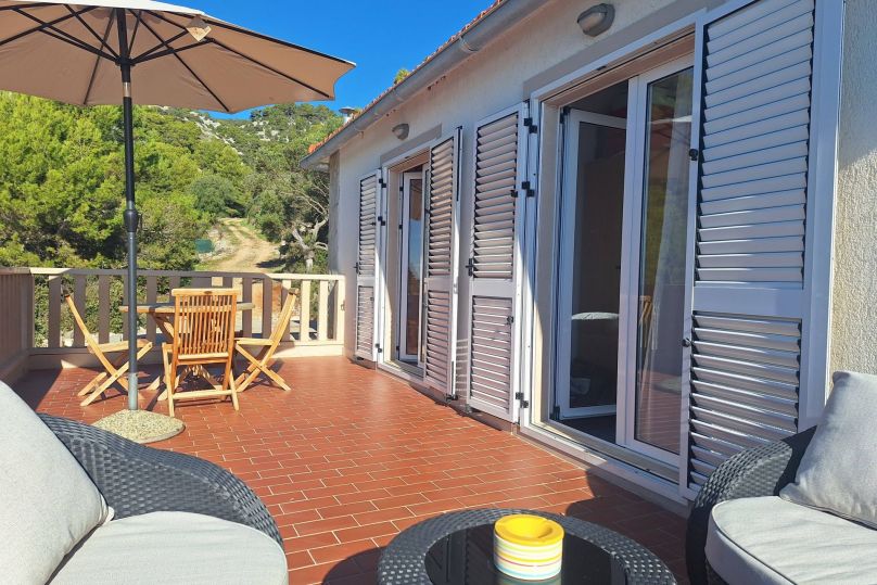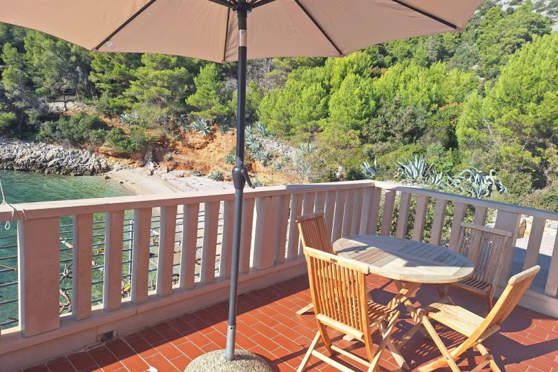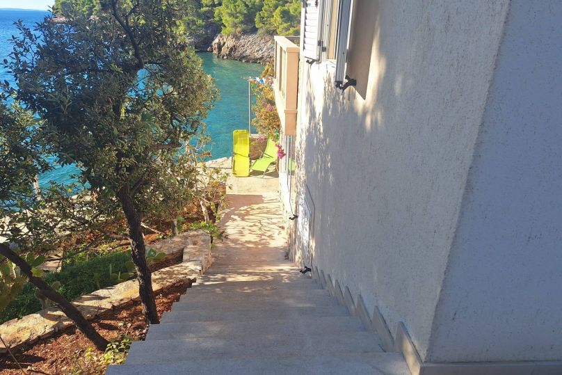 Das Haus am Meer Sonja liegt in einer ruhigen und abgelegenen Bucht von Medvidina auf der Südseite der Insel Hvar, in der Nähe der Stadt Gdinj. Es liegt direkt am Meer und bietet direkten und sanften Zugang zum Kiesstrand. Vom Innenhof und der Balkonterrasse bietet sich ein herrlicher Blic...