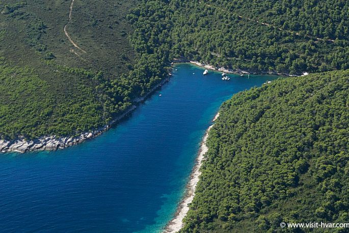 Wenn Sie mit dem Boot aus dem Hafen von Hvar in Richtung Rt (Kap) Pelegrin fahren, einem wunderschönen Naturpark, werden Ihnen sicherlich die Buchten Mala und Vela Grčka gefallen. Beide waren bereits in der Antike Schutzhäfen für Schiffe bei schlechtem Wetter. In der Bucht Parja befindet sich der vorzeitliche Fundort Markova špilja (Markusgrotte), wo die ältesten Spuren aus dem Neolithikum an der Adria entdeckt wurden.