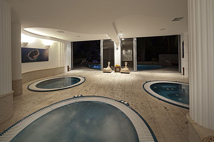 This includes an outdoor pool, three whirlpool baths, a sauna, and a gym fitted with the latest TechnoGym equipment.