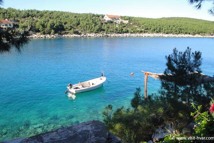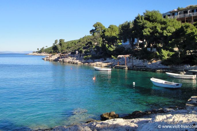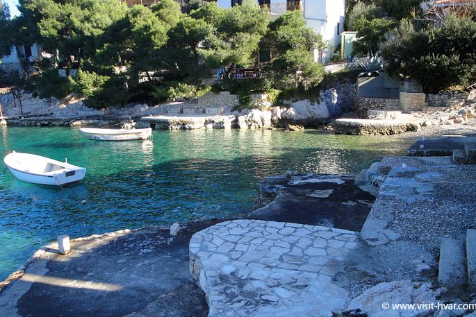 Sie erreichen die Bucht per Auto aus Hvar auf der Strasse, die zum Dorf Brusje führt.